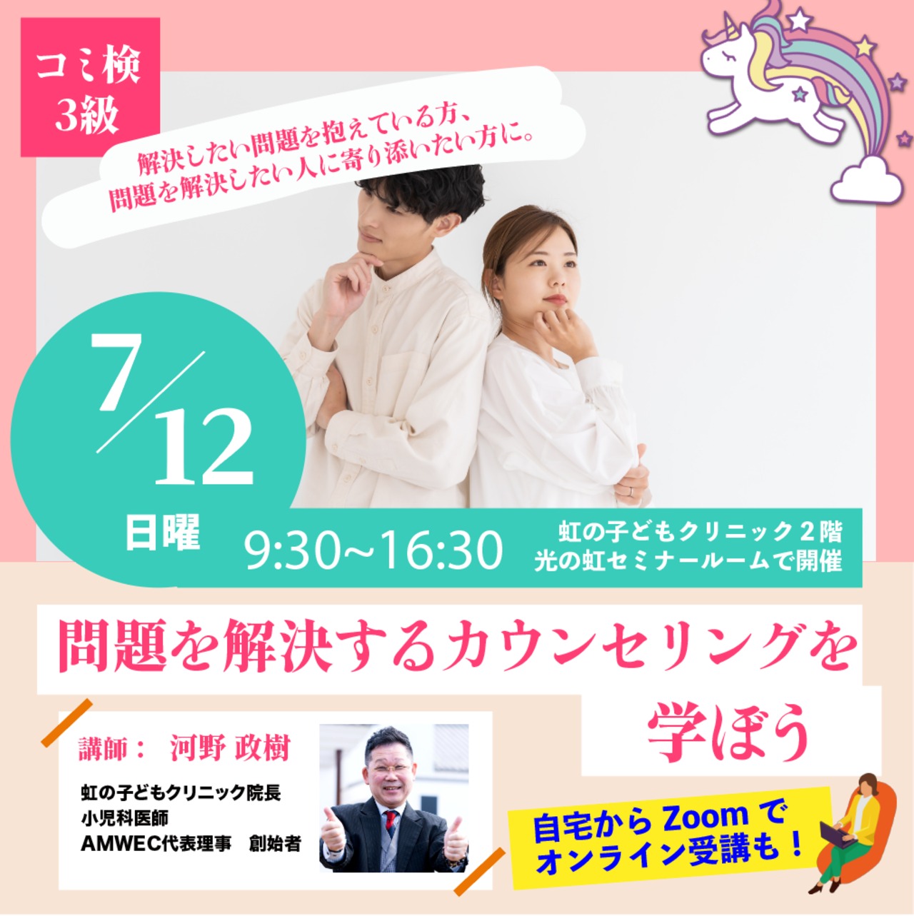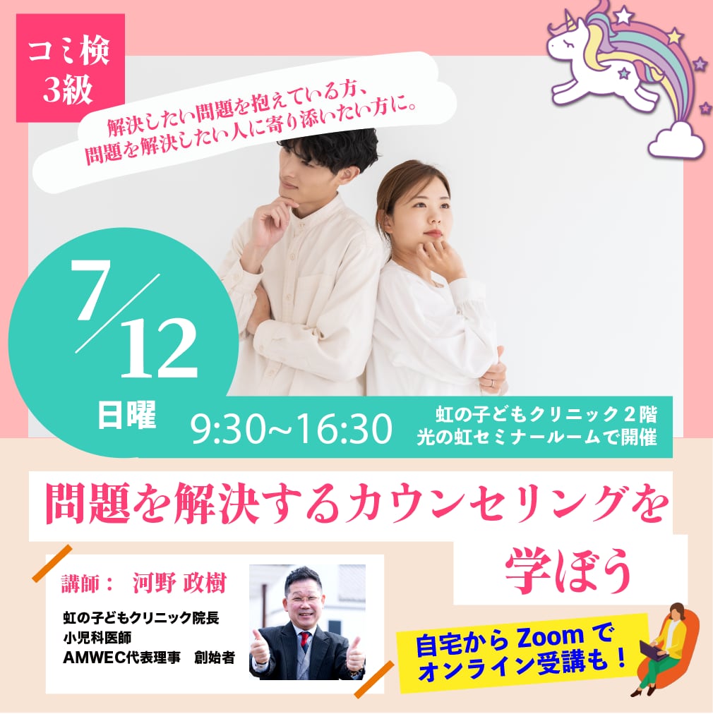 【7月12日(日)】問題を解決するカウンセリングを学ぼう【AMWEC認定コミュニケーション検定3級講座②】