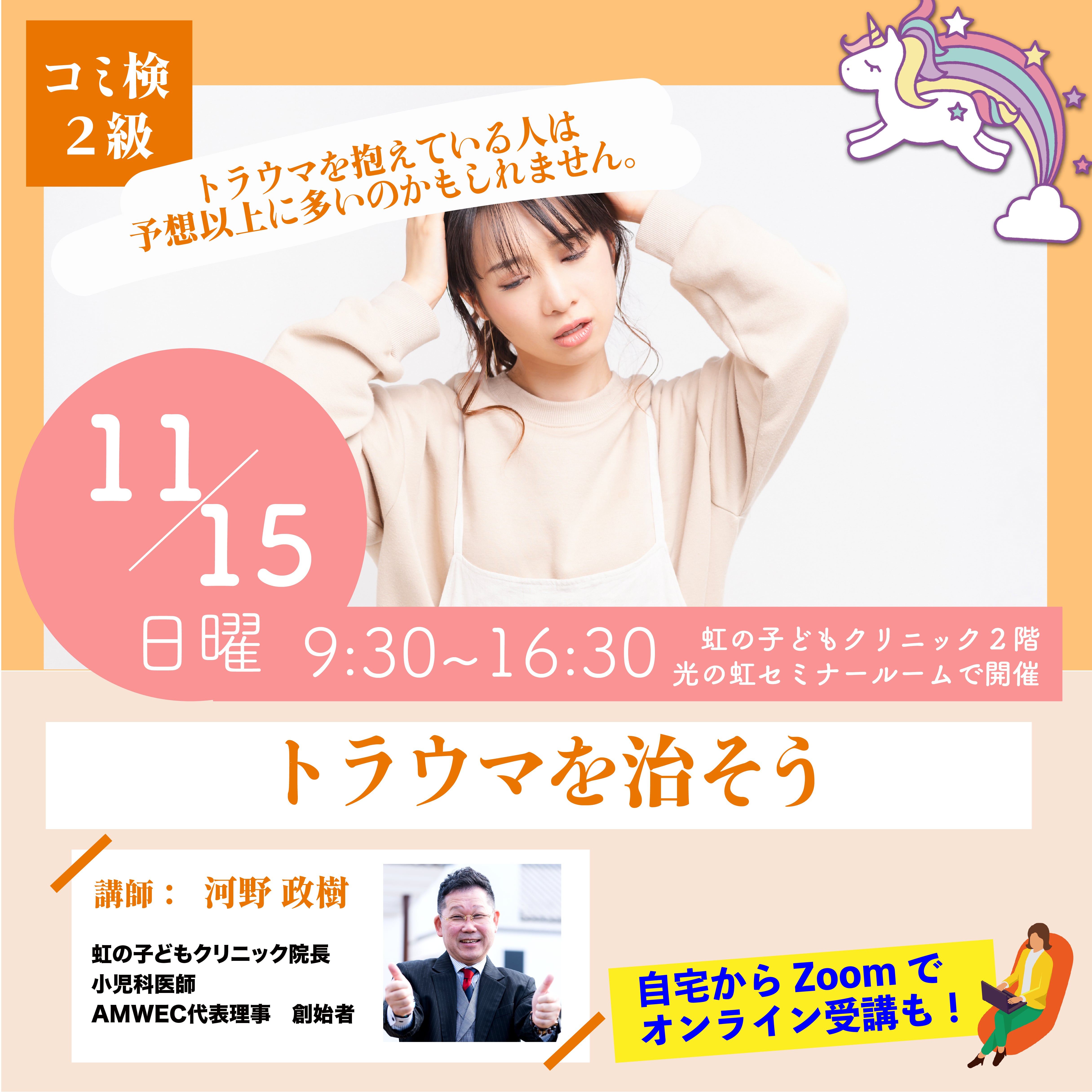 この講座では、NLP(神経言語プログラミング)という方法を用いて、自分自身のトラウマを 、安全に取り除き(心理的な 3 種類の防御を教えます)、その苦しみから解放します。トラウマで悩んでいるご本人はもちろん、悩んでいる方を助けたいという方、プロのカウンセラー等を目指している方にもオススメの講座です。