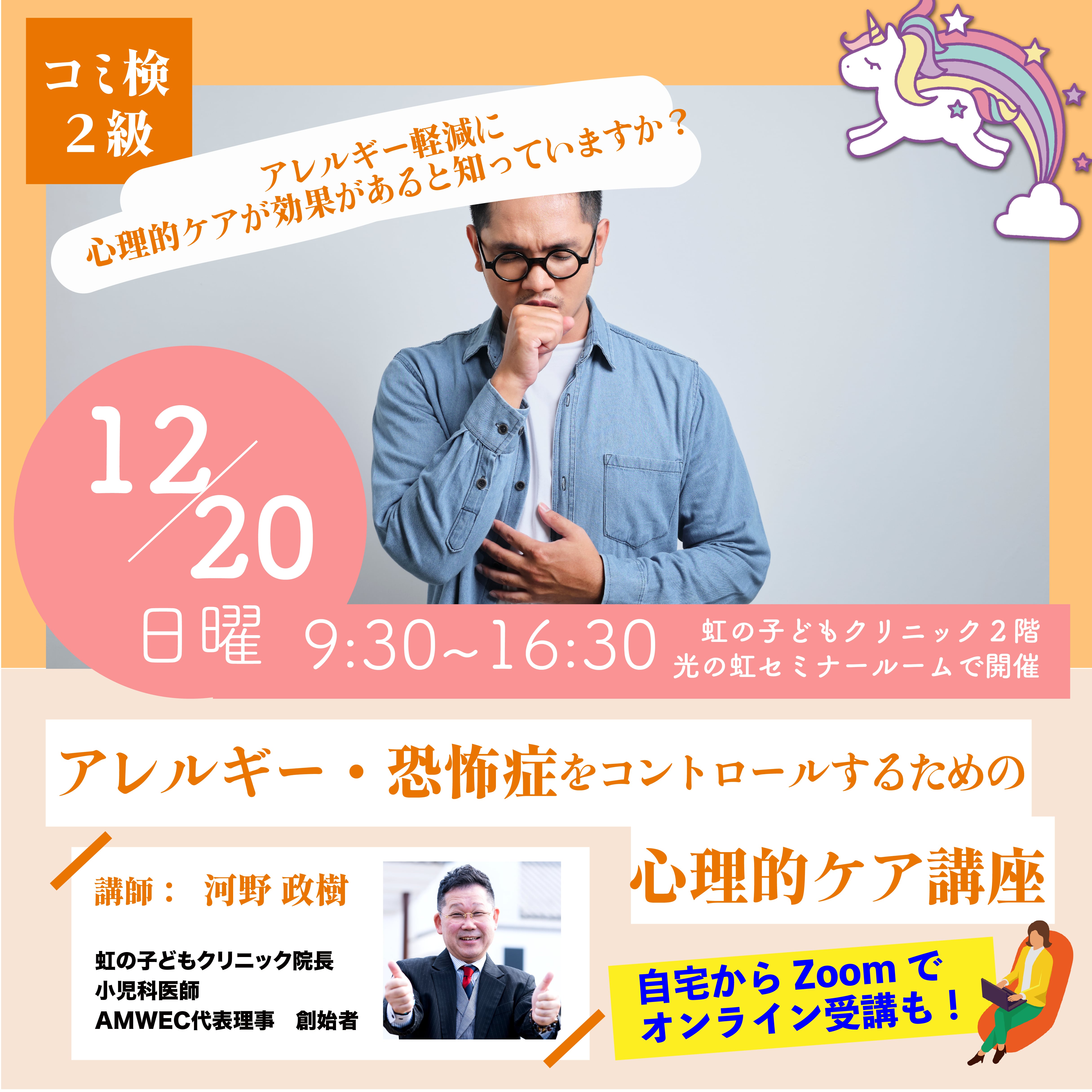 この講座では、NLP(神経言語プログラミング)という方法を用いて、誤認されている花粉や食品などのアレルゲンへの反応を軽減 させる方法(治療ではなく軽減)を教えます。また、誤認されている高所や動物などの恐怖症への反応を軽減させる方法を教えます。