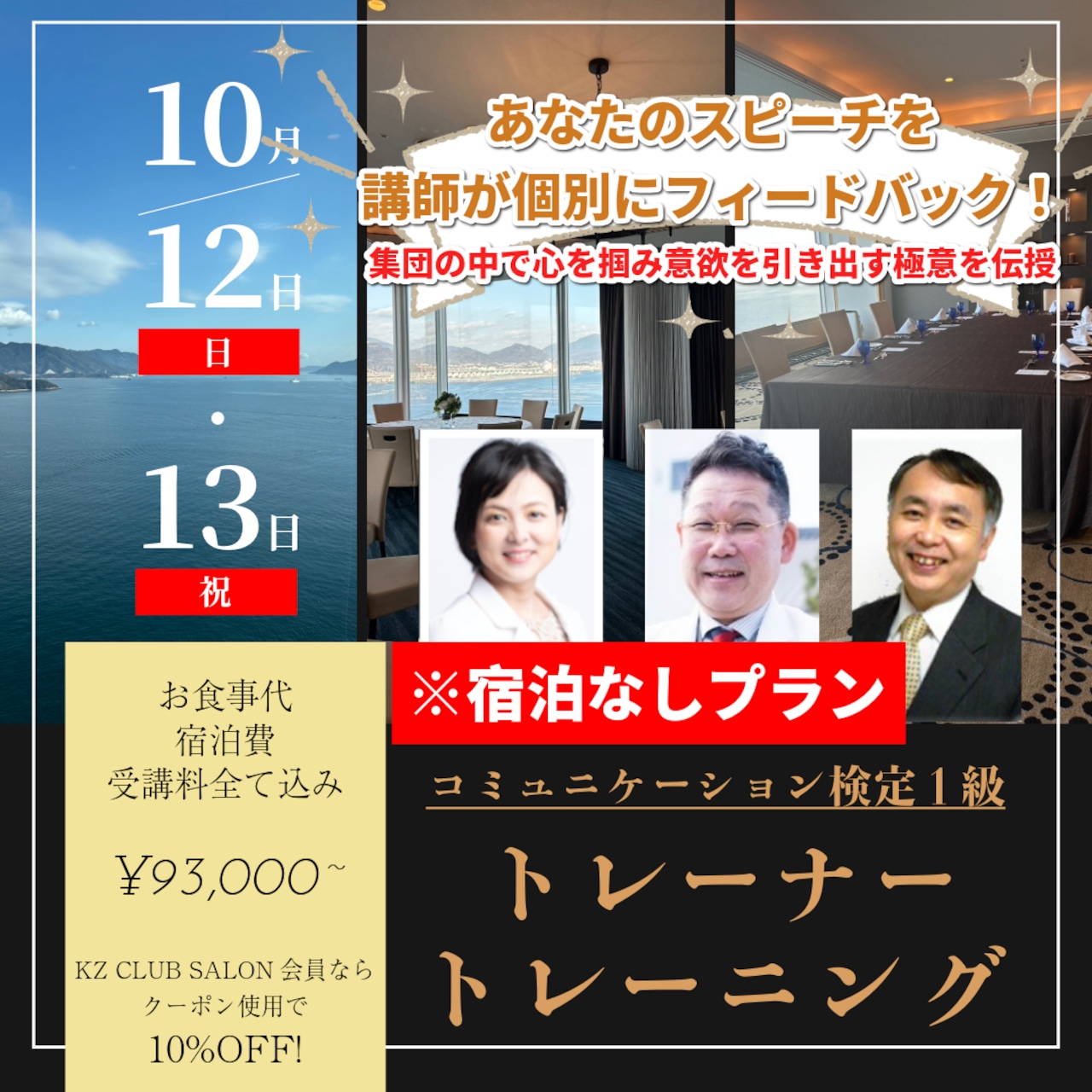 ※宿泊なしプラン【お申し込みは10月9日まで!大人気講座がグランドプリンスホテル広島で開催!】トレーナートレーニング:AMWEC認定コミュニケーション検定1級講座①